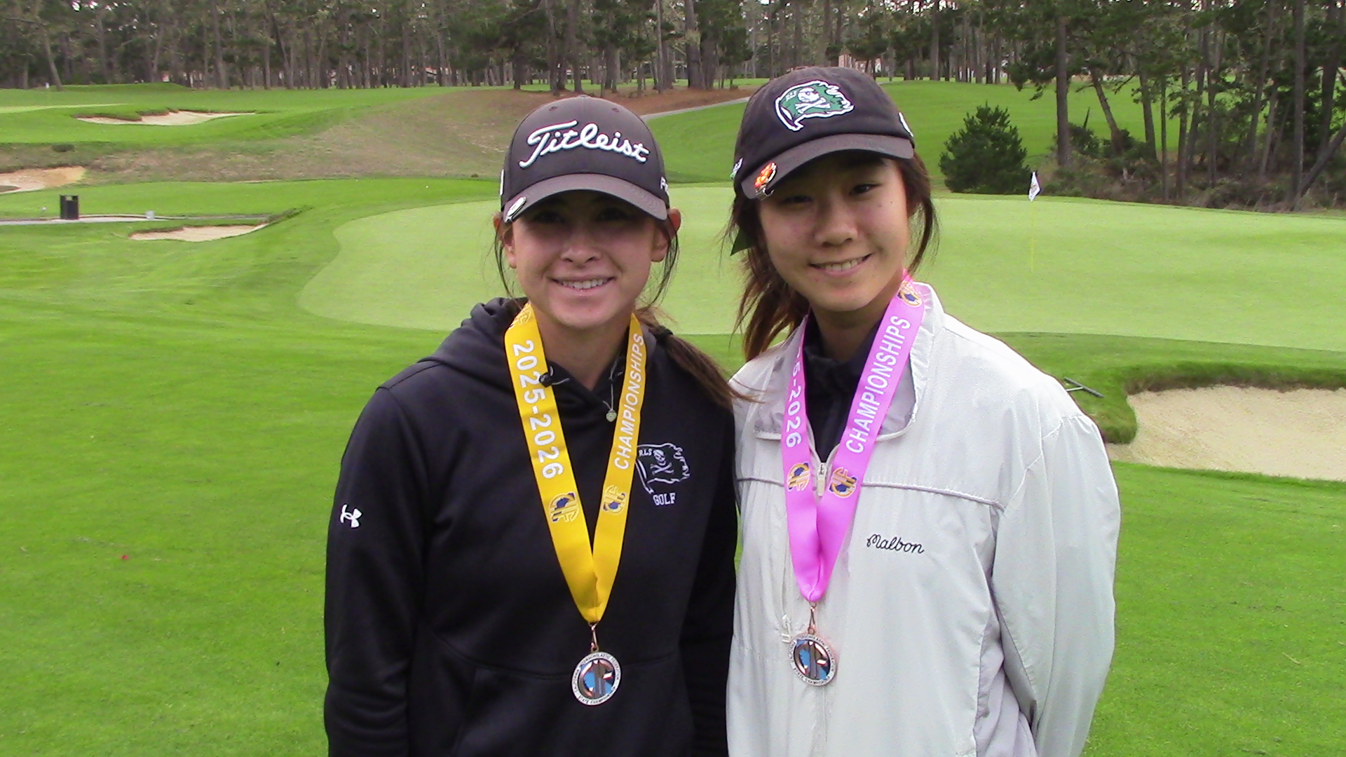 Ashley Gettleman, left, and Lucinda Wu shot 68 and 69, respectively for Robert Louis Stevenson in the state final | Photo courtesy of Alex Valladares