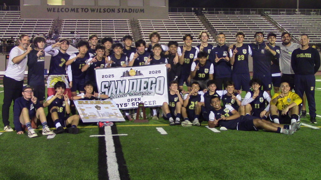 Andre Lopez scored a rebound goal in the 23rd minute following a shot by Jared Baza to lift top-seeded Del Norte to a 1-0 boys soccer victory against No. 3 St. Augustine in the CIF-San Diego Section Open Division championship Feb. 28 at Chick Embrey Field in Wilson Stadium on the campus of Escondido High.