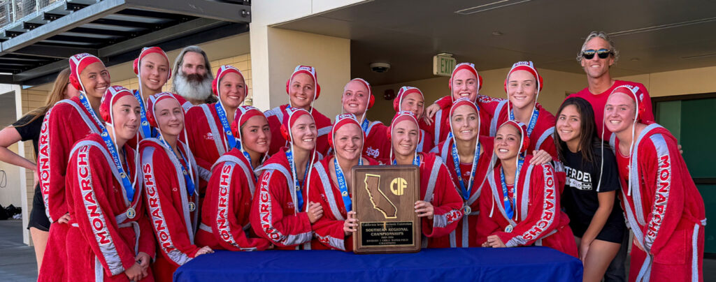 The Monarchs prevailed with interim coach Nathan Allard on the pool deck, as veteran head coach Chris Segesman received a red card Feb. 26 in a 9-7 regional semifinal victory against Newport Harbor and, despite an appeal by the Mater Dei athletic department, was not allowed to mentor the team against San Marcos in the final.