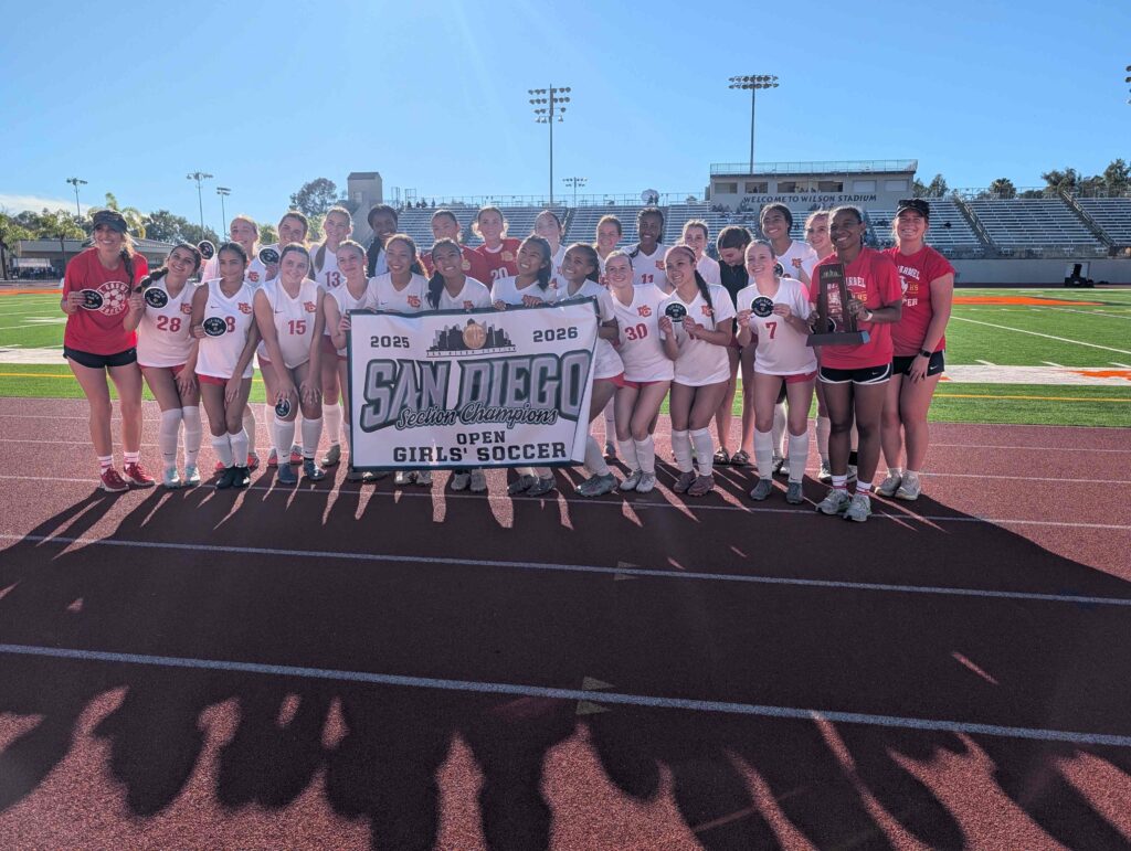 Ellery Muren produced the deciding sudden-death penalty shot for No. 7 Mt. Carmel and Nina Hinchman saved a shot by San Marcos sophomore Miya Kumasaka in the sixth round of the shootout to secure a 5-4 girls soccer victory on penalty kicks against the No. 4 Knights after the teams played to a 0-0 result through regulation and overtime Feb. 28 in the CIF-San Diego Section Open Division championship match at Chick Embrey Field at Wilson Stadium on the campus of Escondido High.